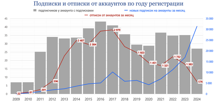 Всего за месяц пользователи оформили 118 755 новых подписок на авторов (на 24% больше предыдущего). И 45 938 отписок от авторов (на 183% больше предыдущего)."