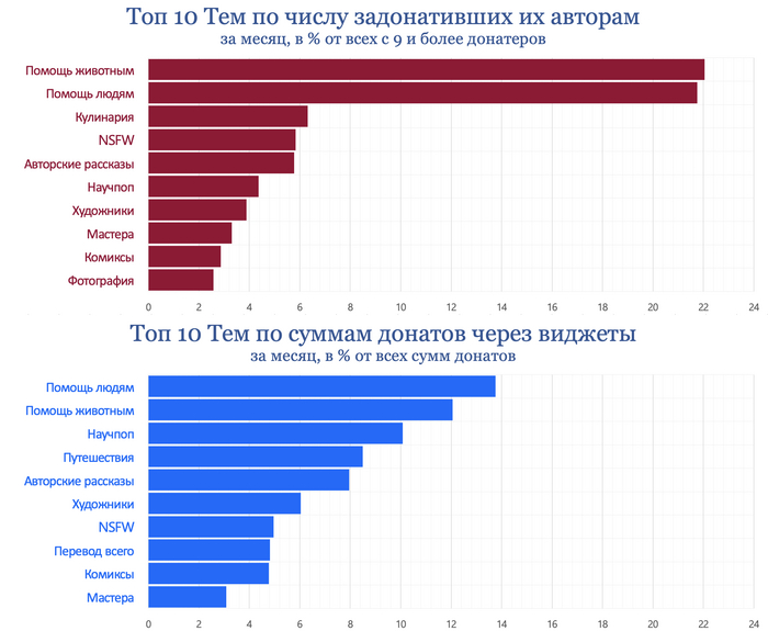 NB. Данные по донатам на Пикабу по состоянию на сегодня приблизительные. На странице пользователя считается не число донатов, им полученное, а число задонативших. Соответственно, если один и тот же пользователь задонатил пикабушнику несколько раз, мы это не увидим.