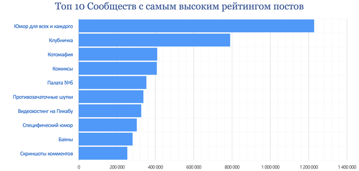 NSFW - 1 590 постов за месяц, Юмор для всех и каждого - 1 566 постов за месяц, Клубничка - 1 089 постов, Котомафия - 1 085, Аниме[18+] - 1 017, Аниме - 983, Клубничка без цензуры - 965, Комиксы - 807, Лига фотографов - 674, Лига Политики - 641.