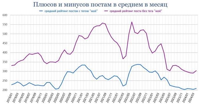 А вот минусы постам после всплеска в апреле-июле прошлого года как реакция на посты с новыми алгоритмами Горячего, по-видимому, постепенно вернутся к своим обычным значениям.
