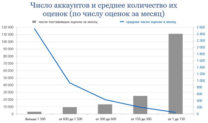 Для сравнения, пользователей, ставивших за месяц оценки вообще -- 120 793 (включая указанных выше).