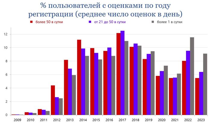 Данные учитывают только пользователей, поставивших оценки постам за последние полгода.