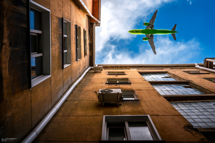 Timeblending стек из нескольких кадров (кадр с рассветом и кадр в момент включения архитектурной подсветки).
