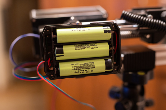 Питание - от трёх 18650 или сетевого адаптера на 12В