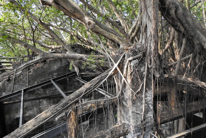 Здание, которое раньше было складом, принадлежавшим компании Tait & Company,теперь заросло неумолимым скоплением баньяновых деревьев.