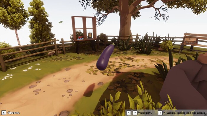 Собственно, Кабачок это псевдоним одного из игроков. Сокращение от Кабачковая икра, таков его псевдоним в Steam. И он почти постоянно присутствовал в обсуждениях игры, добавлял собственные темы, рассказывал про баги, находки. Среди прочего, хвастался тем, как легко добирается до острова по невидимому мосту. И собственно, за счёт этого он был увековечен в самой игре. Подходим к зарослям возле колодца и среди них находим кабачок. Или баклажан, как у меня, поскольку на Кабачка есть скины.