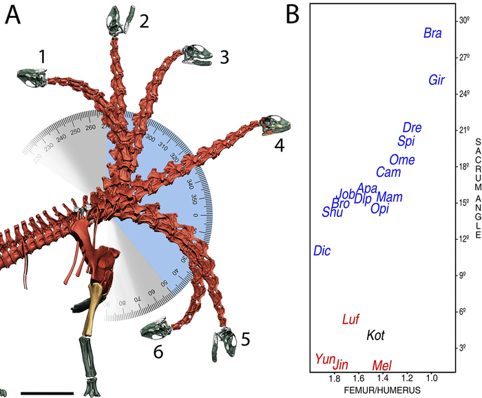 До этого большинство исследований, изучающих зауроподов и способ их кормления, концентрировались в основном на шее и зубах животных. Но важно отметить, что есть связь между соотношением длин передних и задних конечностей к положению шеи, помогающая в стратегии питания. Чем выше передние конечности по отношению к задним, тем выше расположена шея, а значит, зауропод мог эффективнее искать пищу. Это может показаться незначительной деталью, но это не так.