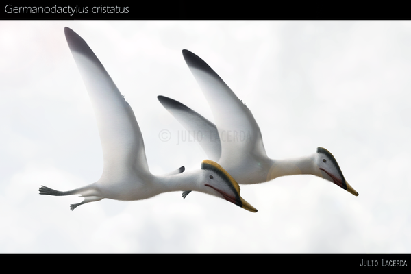 Родом из раннеюрской Германии гермакнодактиль был очень маленьким птерозавром. Всего метр в размахе крыльев. На голове был большой костный гребень, который увеличивался в два раза за счёт кожного нароста.