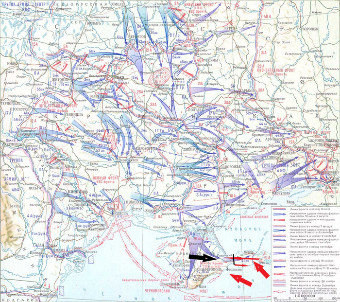 На полуострове Крым, находившиеся войска на днях образованного Крымского фронта готовились к наступлению. Однако продолжался анализ действий советских сил, которые были высажены на полуостров, перешли в первое наступление, но потерпели неудачу и вынуждены были перейти к обороне, потеряв вторично в боях города Судак и Феодосию.