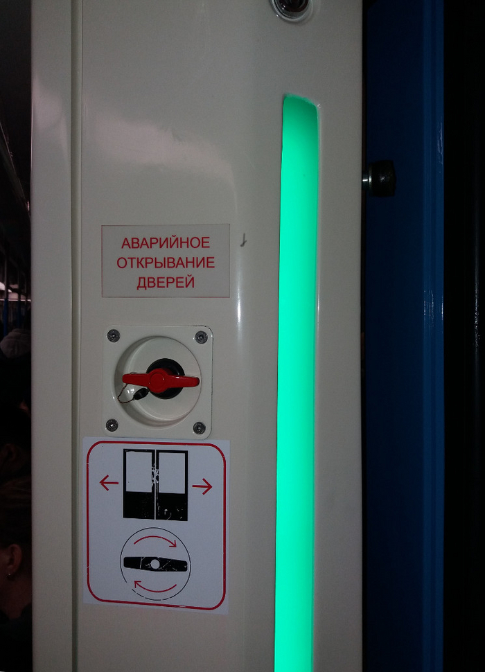 Добавлено. Вот фото из вагона метро. Кто-то писал про опасность покидания электрички через дверь. А вагон метро покидать при экстренной ситуации безопаснее? В моем понимании доступный без инструментов и ключей экстренный выход это логично.