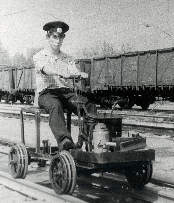 Машинист локомотива, снимок 1980 года, автор Владимир Ролов: