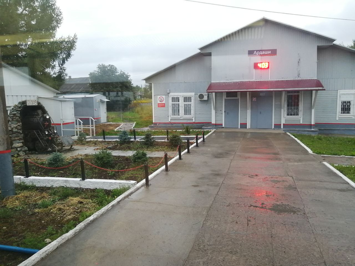 Мы поняли что в каждом городе есть что-то имени Ленина (улица или памятник), надпись я люблю "название города" и старинный поезд. Поезда везде разные, где-то другие модели, где-то разная расцветка, но на этом маленьком полупоезде на станции Ардаши мы перестаем им удивляться и фотографировать.