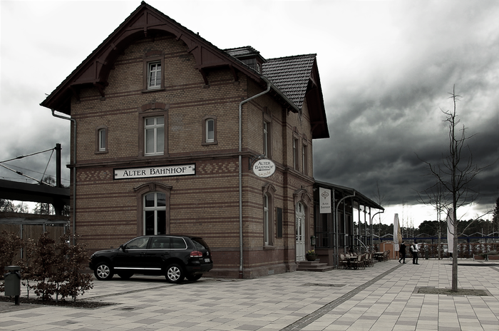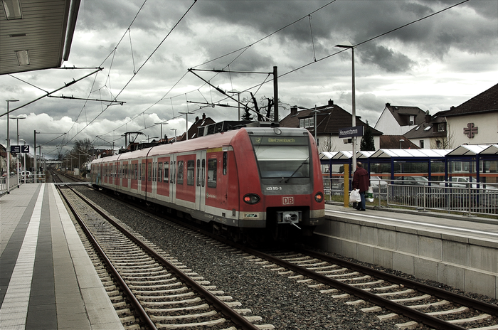 ↓ На платформе пусто, поезд — двухвагонный дизельный "автобус" die Baureihe 628/928. 628 - моторный вагон, 928 - головной. Используется на направлениях с низким пассажиропотоком.