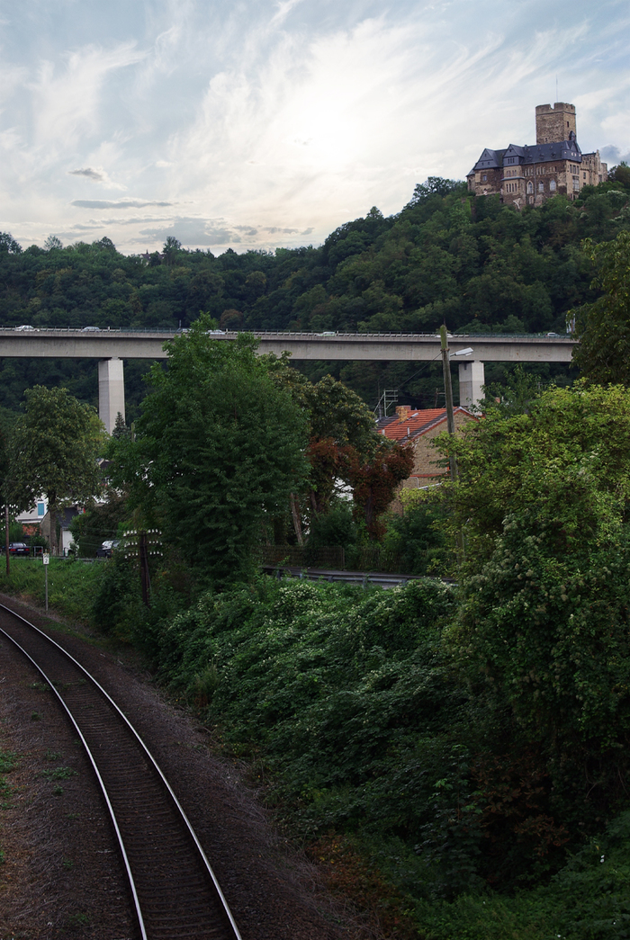 С удаленной, укороченной платформы вокзала уходит die Baureihe 628.4 на Люксембург (Великое Герцогство, не абы как).