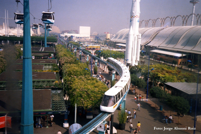 Специально для гостей была обустроена монорельсовая дорога, а станции – как и многие из павильонов – до сих пор стоят за пределами города.