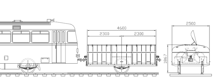 Рама вагона состояла из сварных стальных балок и устанавливалась на 2 колёсные пары, одна из которых была ведущей.
