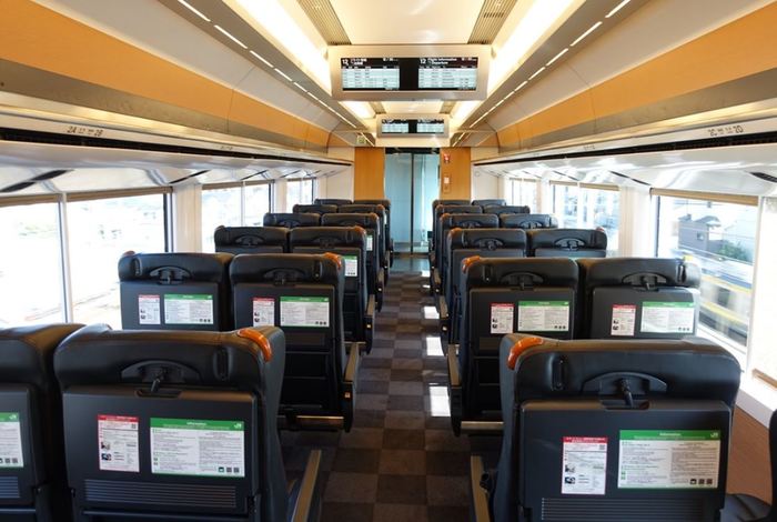 Они оснащены двумя 17-дюймовыми экранами с каждой стороны, отображающими информацию на четырех языках (японском, английском, корейском и китайском).