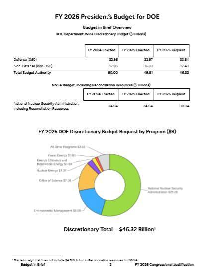 Администрация президента США Дональда Трампа направила в Конгресс бюджетное обоснование, согласно которому ежегодные расходы Национального управления по ядерной безопасности на оружейную деятельность необходимо увеличить с 19 миллиардов долларов, выделенных в этом году, до 30 миллиардов долларов на 2026 финансовый год.