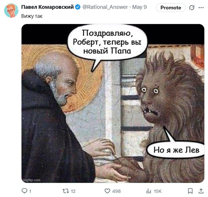 🐌 В Ватикане наконец выбрали нового Папу Римского. Им стал кардинал Роберт Фрэнсис Превост, взявший себе имя Лев XIV – теперь это первый глава католической церкви из США. Он родился в Чикаго в 1955 году, получил степень бакалавра математических наук в Университете Вилланова (как шутят: he doesn’t just understand sin – he understands cos).