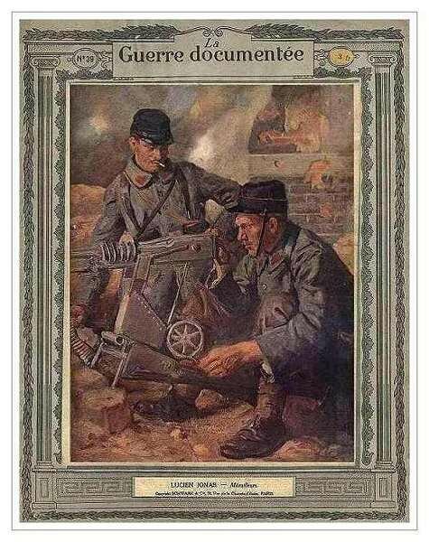 Так, в журнале «La Guerre Documentee»[1] (в переводе – «Война задокументированная»), достаточно популярном в свое время, на рисунках изображали французских пулеметчиков, которые подготавливали пулемет к бою, конный патруль, солдат, которые всматриваются вдаль, или марш французских войск на фронте, а впереди всех – солдата, державшего французское знамя. Это пробуждало патриотические чувства.