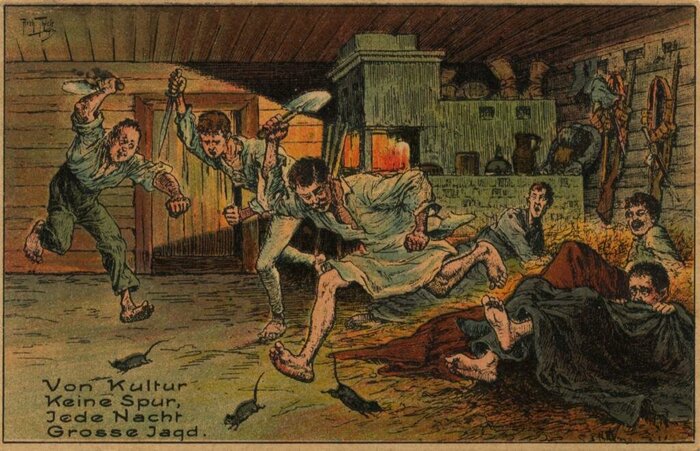 Против России тоже была пропаганда в эти непростые дни. Немцы подготовились «классически» – выпустили антироссийские открытки.
