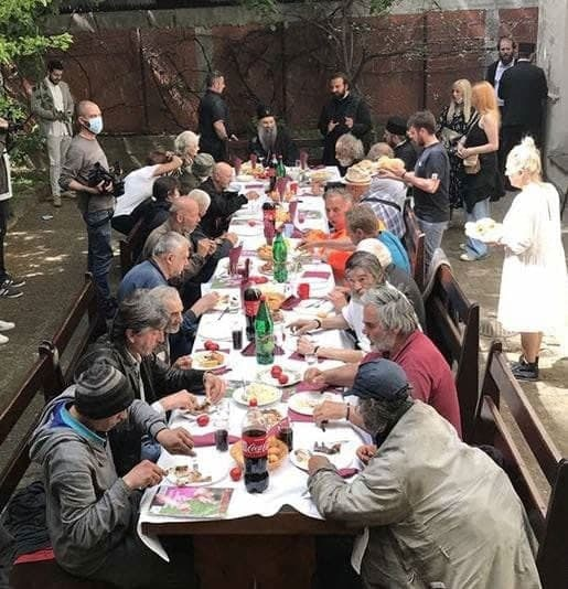 В обществе бездомных Предстоятель Сербской Православной Церкви пообедал во дворе кухни Церковного благотворительного общества. За столом с Патриархом были 20 постоянных посетителей бесплатной столовой, большинство из которых – нищие, не имеющие крыши над головой.