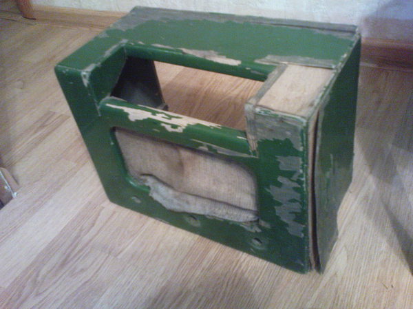 Но, благодаря простоте конструкции, корпус удалось полностью сохранить и восстановить в первозданном виде. Расслоившуюся фанеру я склеил обратно столярным клеем, а там, где это не удалось, обломал отслоившиеся слои и с помощью эпоксидного клея выровнял все образовавшиеся неровности. Затем - грунтовка и покраска.