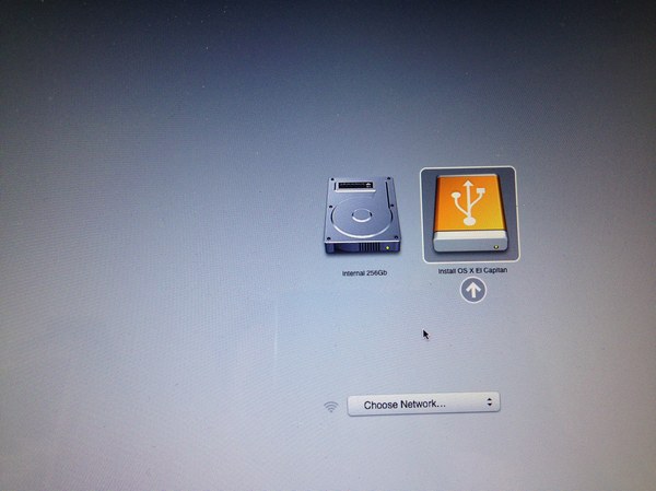 Берем целевой компьютер, вставляем флешку в порт, перезагружаем и во время включения зажимаем Option (ALT) и видим