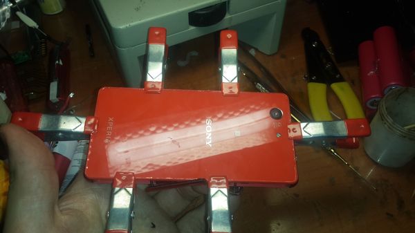 Скотчи двусторонние, и клей B7000, он конечно шикарен, но сохнет 12 часов, поэтому я там где удобно клею скотч, в остальных местах проливаю клеем, при таком раскладе точно не отвалится.