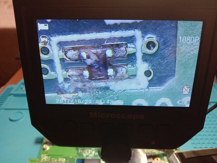 Краткая предыстория: после жесткого падения на данном аппарате был разбит экран, хозяйка обратилась в сервис, где ей установили новый экран, после чего телефон проработал 3 дня и перестал подавать признаки жизни. После повторного обращения телефон находился в сервисе около месяца и был выдан хозяйке без ремонта с диагнозом: материнская плата - "труп". Собственно в этом состоянии телефон и попал ко мне в руки. Диагноз подтверждаю, видны попытки ремонта, однако считаю, что ремонт данной платы изначально был бесполезен из-за ее значительной деформации. Хозяйка интересовалась полной заменой материнской платы, но это ведь не наш метод))). Тем более, что на руках была аналогичная плата - потенциальный донор. "Потенциальный" - потому что работоспособность платы была под вопросом. Досталась мне она уже в неисправном виде, слегка "копанной. С появлением колодки для UFS BGA153 была выяснена неисправность микросхемы памяти. Без памяти плата определялась компом как Huawei USB COM 1.0, что и вселяло надежду на успех.