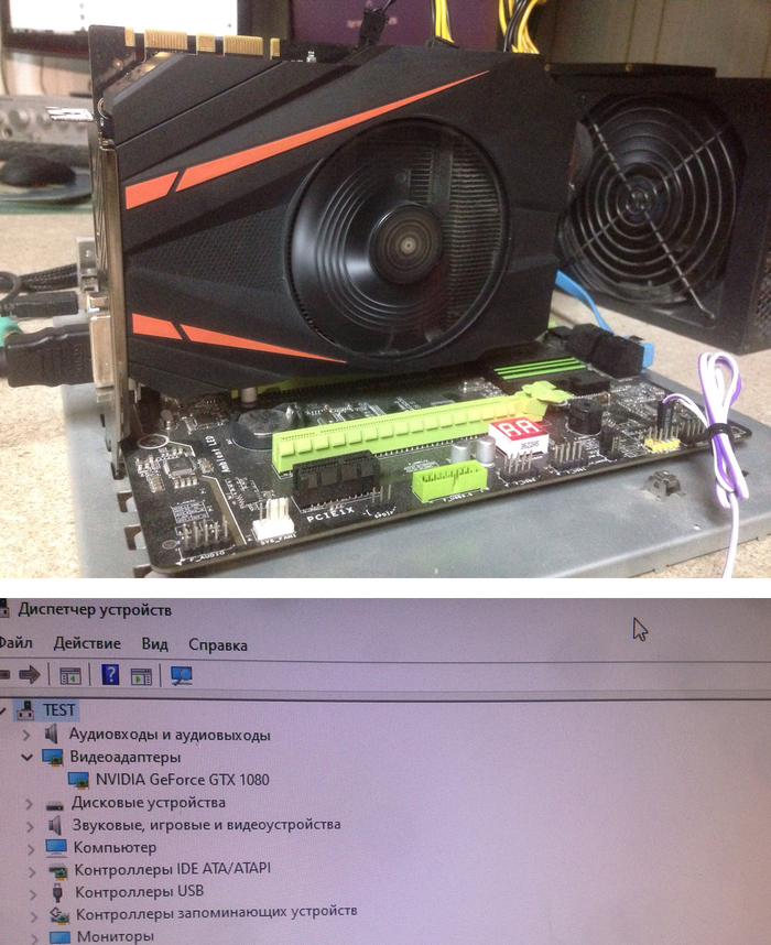 Видеокарта собрана и нормально запустилась. Видеодрайвер успешно установился
