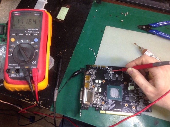 Однако, 0,5А - это слишком малое потребление для GTX1080. Оказалось, что питание видеопамяти отсутствует.