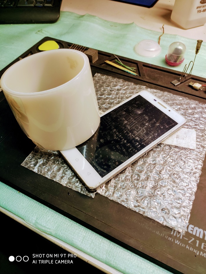 Меняю разъем на новый при помощи термовоздушной станции на 320ти попугаях Lukey852D+. Нижний подогрев выключен, это не понты. Просто у него удобные держатели для плат) Осталось еще раз все проверить, предсобрать и протестировать.