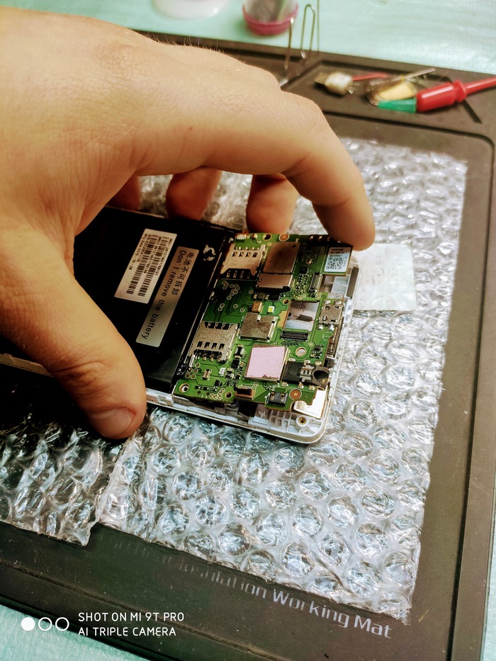 Проведу внешний осмотр и анализ увиденного. Системный разъем microUSB находится на основной плате. Необходимо ее извлечь и продолжить внешний осмотр. Для этого снимаю/отключаю всю периферию. В первую очередь отключаю аккумулятор, он же аккумуляторная батарея (далее АКБ). Все основные и фронтальные камеры необходимо снять что бы не запороть линзу или механизм стабилизации/фокусировки. Припаянные шлейфа, в нашем случае шлейф кнопки включения/громкости, можно отпаять, а можно просто отклеить сам шлейф от рамы. Выкручиваю винты, фиксирующие системную плату и приподнимаю верхнюю часть. Несколько шлейфов и коаксиальный кабель подключены с обратной стороны платы. Аккуратно выполняйте такой демонтаж, риск повредить шлейфа, которых не видно очень велик, особенно если орудуете металлической лопаткой, как во всех интернетах ваших))