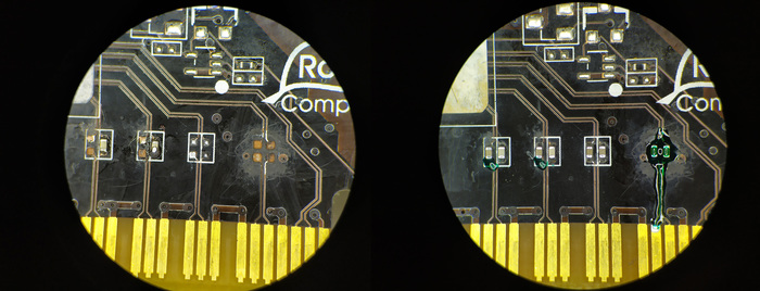 Решил мультиметром прозвонить контакты разъема на плате. И тут выяснилось, что контакты к плате не припаяны. А пластиковая часть разъема болтается внутри. Болтается не сильно, поэтому решил пропаять.