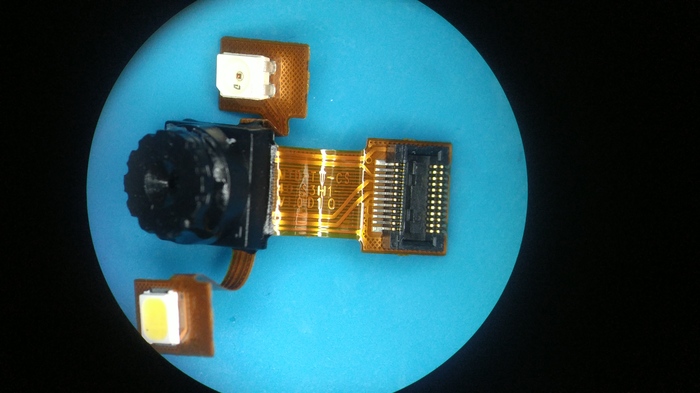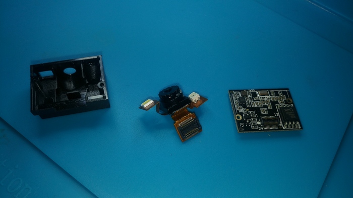 Яснее не стало... Пассивные элементы без маркировок. Микроконтроллер либо с затертой, либо изначально не нанесенной маркировкой (только номер, скорее всего внутренний номер для производства). Из понятного два резонатора, транзисторы и микросхема память фирмы XMC. Сам элемент считывателя представляет собой CMOS камеру с двумя светодиодами, белым и красным.