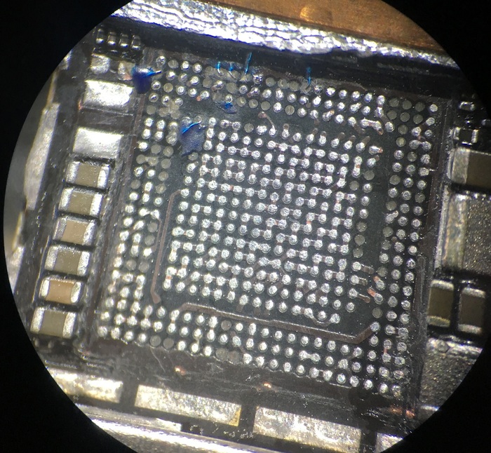 По времени ремонт занял 3 часа, так как долго подбирал термопрофиль для пайки микросхемы рядом с процессором.