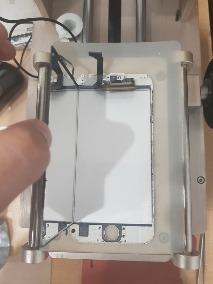 Для начала положу на нижний подогрев на 20 секунд для размягчения водоотталкивающего двустороннего скотча между корпусом и дисплеем: