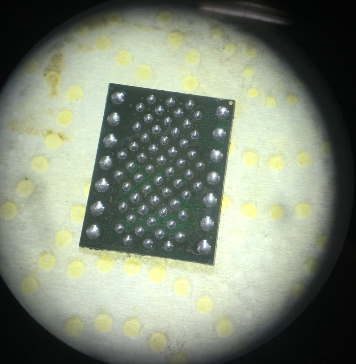 И подготовлю новый чип, предварительно сняв тугоплавкий заводской припой и ошарив своим среднетемпературным: