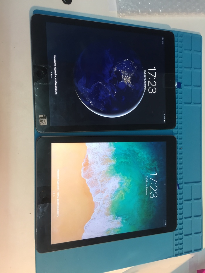На последнем фото два готовых брата. Выше Air, справа iPad 6. Их можно различить по кнопкам, на Air нет отпечатка пальца, кнопка с белым квадратиком. Стоимость для клиента составила 3500