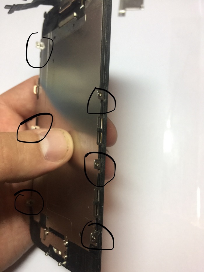 5. Снимаем экран и выкручиваем винты по контуру соединяющие металлическую пластину и сам Модуль. Их 6 шт.