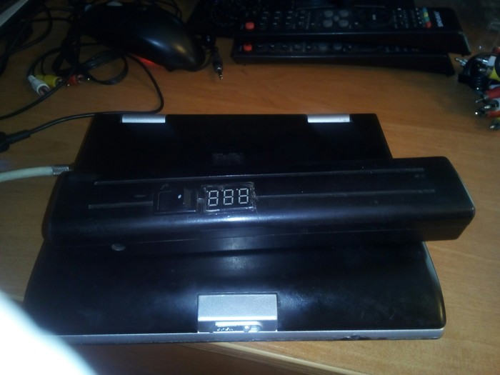 Сломался помощник Openbox SF 50,новый покупать накладно,можно конечно было купить альтернативный прибор,подешевле. Но...дело было вечером ,делать было нечего,родилась мысль в портативный ДВД установить плату от спутникового тюнера. За основу был взят uclan b6. Много лет у меня лежала без надобности эта портативка. Вынял привод,на место привода установил плату тюнера,пришлось повозиться с корпусом,вырезать,подрезать,чтоб плата села. Подпаялся к AV входу. Вывел сенсор пульта ДУ на место от старого IR датчика. Батарею пришлось переделать так как стояла с никелевыми банками. Установил литиевые элементы 18650 и балансир на 3 банки. Поставил вольтметр,чтоб следить за зарядом АКБ. Кроме спутникового тюнера покупать больше ничего не пришлось.Элементы 18650 и балансир покупал для шуруповерта,но как оказалось,надо было брать балансир на 4 элемента,и эти запчасти не пригодились.Портативка лежала на запчасти,еле нашел аккумулятор от нее. Зарядное со своих запасов, на 12.6 подобрал.Вольтметр копеечный,недавно установил,пользовался без него.Вот так ,немного фантазии,получился прибор для настройки спутниковых антенн.Пишу, может кому пригодится идея, рад поделиться.