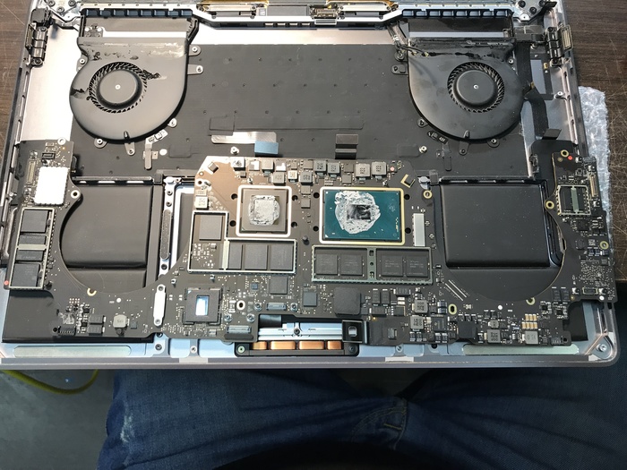 Первый раз владелец разбил матрицу и поменял у них крышку в сборе. Второй раз уже отнёс на диагностику после залития квасом. СЕРСО выставил ценник в 90+ тыс руб. за замену материнки, топкейса и кулеров. Клиент отказался от ремонта, оплатил диагностику в размере ~3600р. и приехал ко мне.