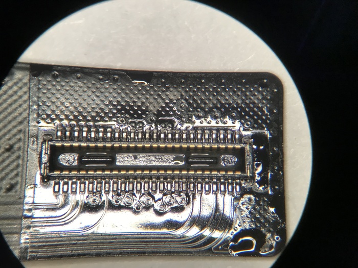 Всем спасибо! Лимит блоков исчерпан, а то я бы добавил ещё фоток. На фото - моё паяльное жало после всех манипуляций, проведённых с этой микросхемой. Итог: работает стерео вход, стерео выход на динамики, раздельный моно выход на наушники. Так как оно уже было более статически развязано, да и сам кодек поновее, то при повторном подключении того же микрофона (слабоумие и отвага) звук с него появился и выгорания не произошло. Результатом я удовлетворён с точки зрения эксперимента. Но мой вам совет - лучше таким не занимайтесь. Я занялся, т.к. было немного свободного времени. А если нужен быстрый и качественный результат - купите донорскую плату за копейки или попросите в мастерской сдуть вам кодек нужной модели, т.к. в этом случае из простой переделки это превратилось в целую эпопею, которая заняла у меня 4 суток работы. Всем удачных ремонтов, с вами был Kekovsky, специально и персонально для пользователей пикабу.