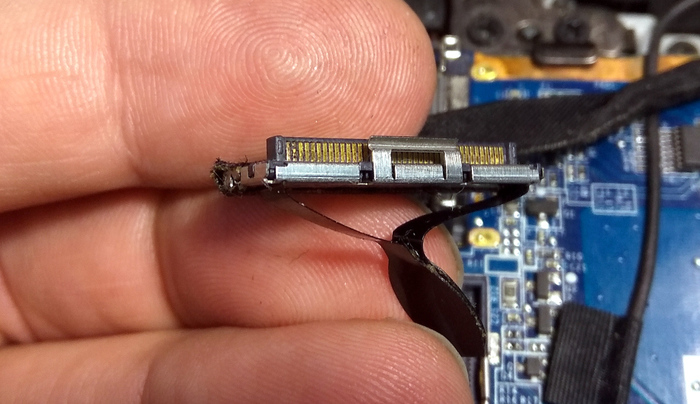 На фото последствия удара. Оторвались от платы неиспользуемые контактные площадки