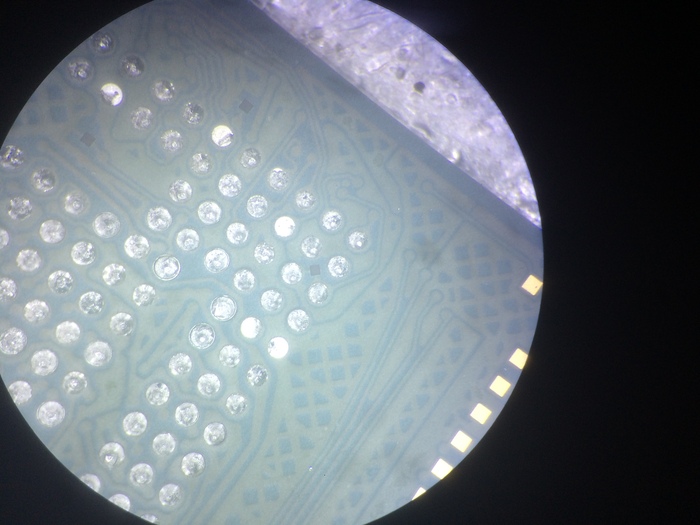 Это не мои поделки, это уже от людей, которые обращались с вопросом: а можно ли это починить. Чип залит компаундом, чтобы его снять, нужно прогреть до температуры плавления припоя. Если температуру не соблюсти, то контакты на плате будут вырваны при снятии чипа. Грустно смотреть на такое.