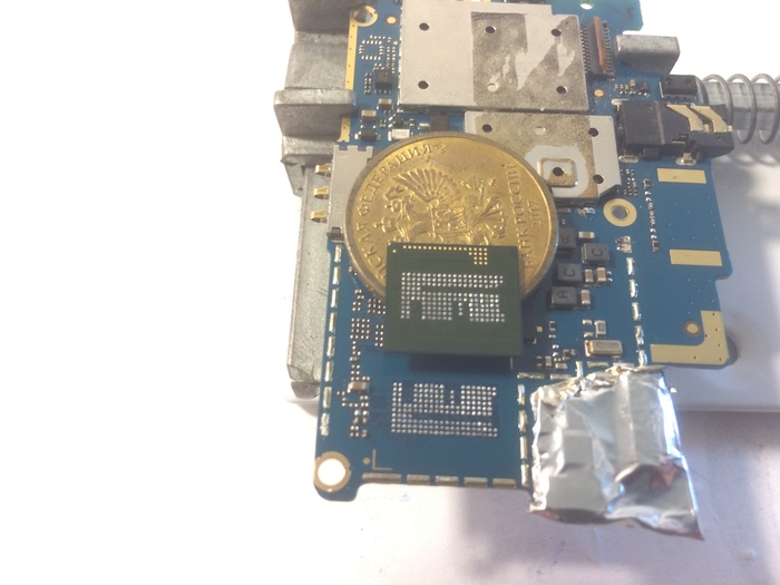 Не трудно догадаться, что если поставить новый чип, то на нём точно так же надо восстановить boot с флешки, это даст нам download режим, что собственно позволит прошить сервисную прошивку и запустить аппарат.