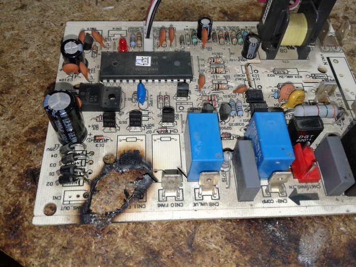 снимаем микросхему, никаких опасностей в виде компаунда поблизости нет, поэтому все делается достаточно просто.