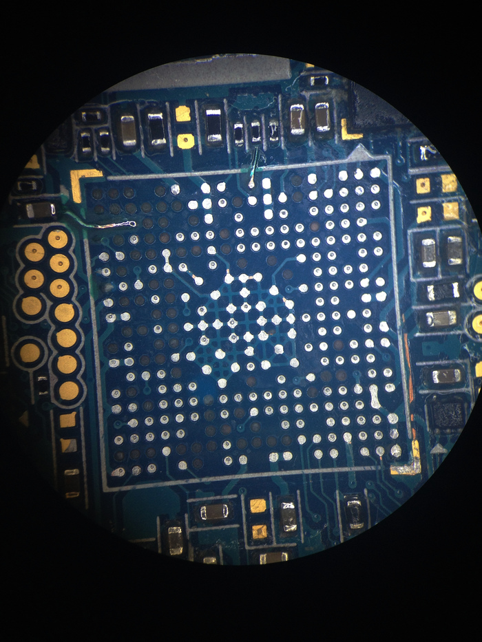 Те что на поверхности, восстанавливаем проводками. Расколупываем межслой, садим шарик на последний, после срезаем излишки скальпелем.