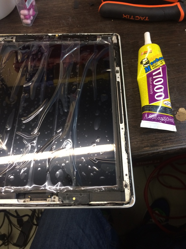 Проверяем функционал и будем собирать. Проклеиваем по периметру двухсторонним скотчем и вдоль проклейки поливаем тонким слоем T7000